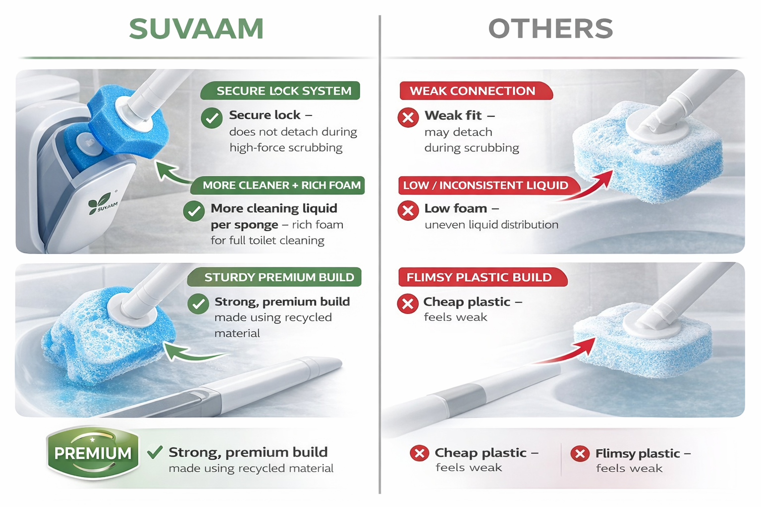 Crafted using plant-based materials and free from harsh chemicals for a safer, gentler clean.